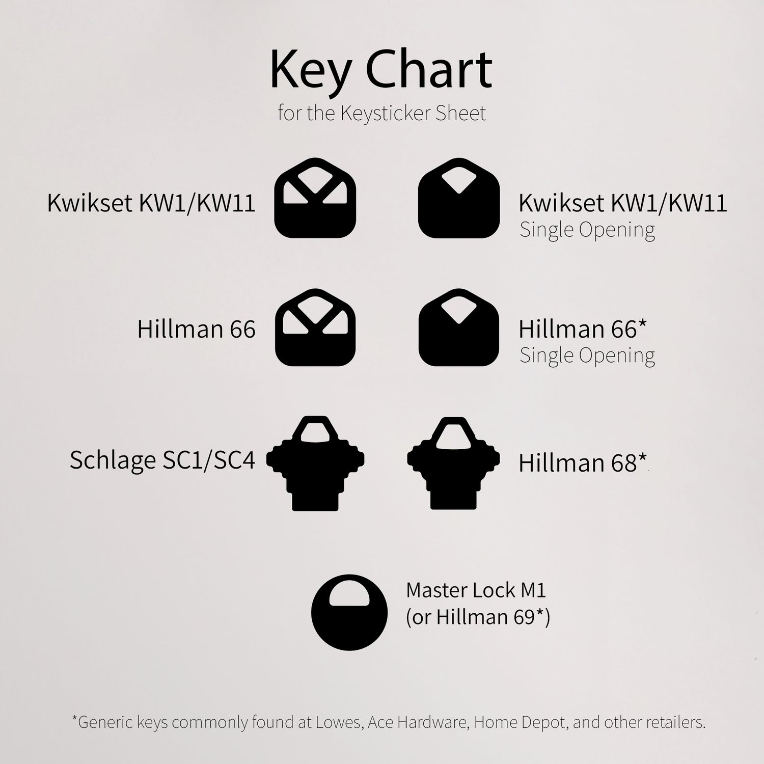 And other generic keys (for the Schlage SC1/SC4 & Kwikset KW1/KW11)